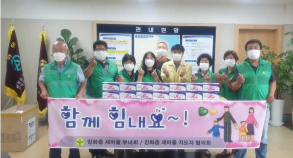 강화군 강화읍 새마을남?여지도자(회장 신봉기, 이임순)는 지난달 31일 읍사무소를 방문해 코로나19 재확산 예방을 위해 마스크 1만여 장을 기탁했다.