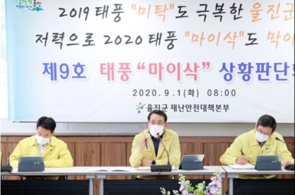 울진군(군수 전찬걸)은 1일 오전 제9호 태풍‘마이삭’의 북상에 따라 재난안전대책본부장 주재로 실과소장 및 읍면장이 참석한 가운데 상황판단연석회의를 개최했다.