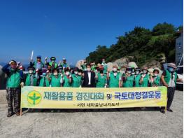 남해군 서면새마을남녀지도자들(협의회장 윤병춘, 부녀회장 정민숙)이 지난달 31일 재활용품 경진대회 및 국토대청결운동에 나섰다.