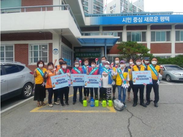평택시 세교동행정복지센터는 코로나19에 적극 대응하기 위하여 세교동 관내 다중이용시설 일제 방역을 관내 단체 회원들과 함께 8. 31.부터 9. 1. 이틀에 걸쳐 실시했다.