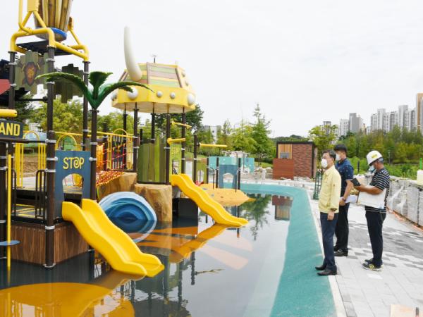 정 시장은 현장 점검에서 “코로나19가 빨리 끝나 단 하루라도 우리 아이들이 즐겁고 행복하게 이용했으면 참 좋겠다”면서 바닥 마감부터 물놀이 시설까지 꼼꼼한 사전 점검을 강조했다.
