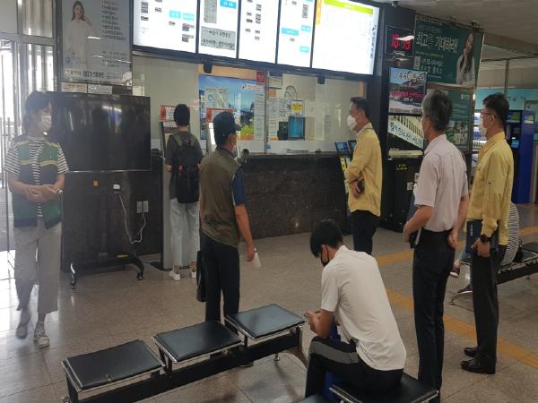 주요 점검사항으로 ▲터미널 열화상카메라 운영 사항 ▲전세버스 전자출입명부 시행 여부(탑승객 명단 작성) ▲대중교통 운수종사자 및 이용자 마스크 착용 여부 ▲운수종사자 감염병 예방관련 교육실시 여부 등이다.