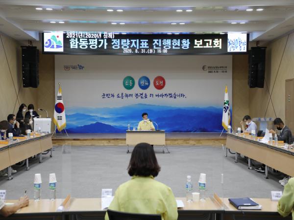 함양군은 31일 오후 조현옥 부군수 주재로 지표담당계장 등 40여명이 참석한 가운데 ?년(20년 실적) 시군 합동평가 정량지표 진행현황 보고회’를 개최했다.