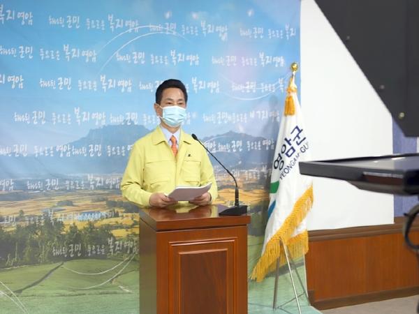 9월 1일, 전동평 영암군수는 “최근 기록적인 폭우와 태풍 비상근무, 장기간의 코로나 19 대응으로 지치고 힘들어하고 있는 공직자들에게 위로와 격려의 말을 전한다”면서,“군은 코로나 19 장기화로 인해 어려운 재정여건속에서도 국가 긴급재난지원금 중 군비 15억원과 영암군 긴급재난생활비를 군민1인당 10만원씩 총55억원을 지급하는 등 큰 시름에 빠져있는 군민들에게 조금이나마 보탬이 되고자 노력했으며 앞으로도 군민들의 안전은 물론 침체된 지역경제 회복을 위해 혼신의 힘을 다해달라”고 특별히 당부했다.