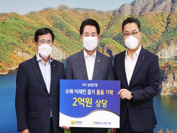 전라남도는 1일 NH농협은행이 집중호우 피해 극복을 위해 2억 원 상당의 물품을 기탁했다고 밝혔다.
