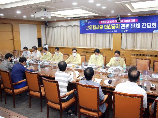 창원시(시장 허성무)는 1일 오후 3시 시청 시정회의실에서 사회적거리두기 2단계 격상에 따라 고위험시설 집합금지 관련 단체와 간담회를 개최했다고 밝혔다.