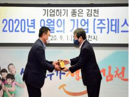 김천시(시장 김충섭)는 9월 이달의 기업으로 (주)테스크(황정상 대표)을 선정하고 1일 김천시청에서 황정상 대표 및 임직원 등 30여 명이 참석한 가운데 선정패 전달식 및 회사기 게양식을 가졌다.