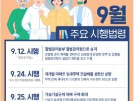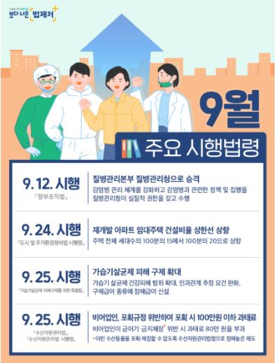 법제처(처장 이강섭)는 9월에 총 61개의 법령이 새로 시행된다고 밝혔다. 주요 시행법령의 내용과 시행일은 다음과 같다.