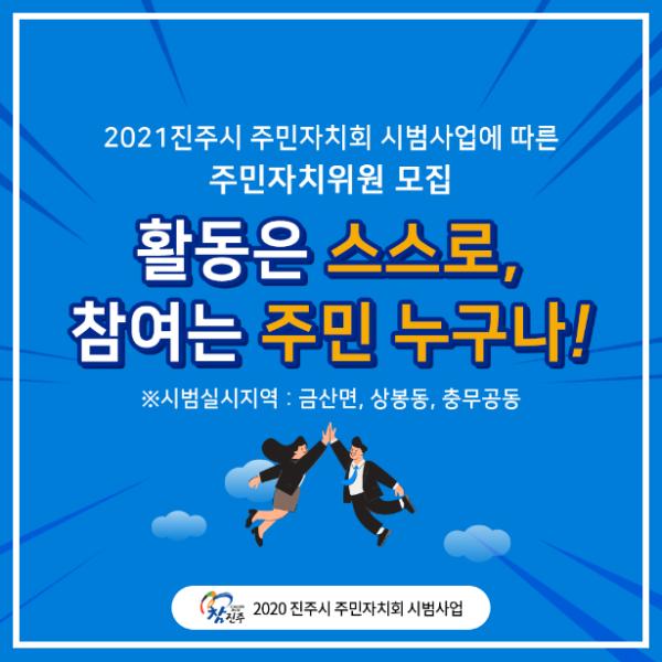 진주시가 실질적인 풀뿌리 민주주의를 위한 주민자치회 시범사업을 실시하기 위해 금산면, 상봉동, 충무공동 3개 면·동을 시범실시 지역으로 선정하고 내년 1월부터 주민자치회로 전환한다고 밝혔다.