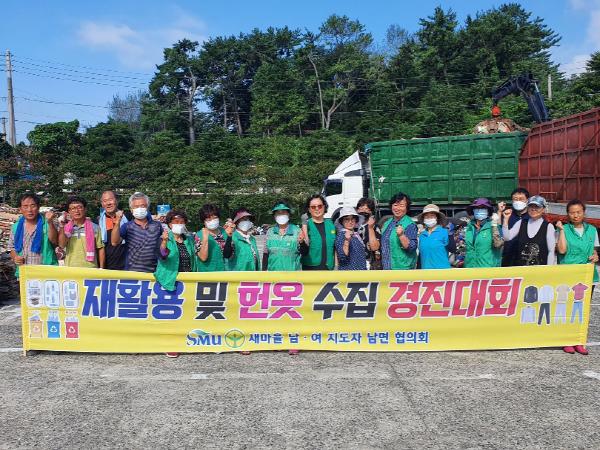 남해군 남면 새마을남녀지도자들이 지난달 31일 오전 10시 남면공설운동장 주차장에서 재활용품 및 헌옷수집 경진대회를 개최했다.