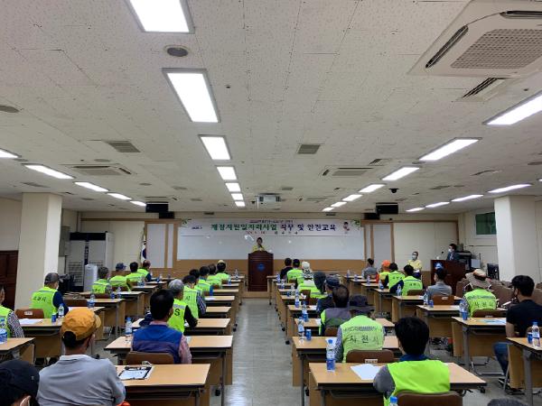 사천시는 2020년 하반기 산림분야 재정지원 일자리 사업의 원활한 추진을 위하여 지난 1일 시청 민방위교육장에서 코로나19 예방수칙을 준수하는 가운데 참여근로자 38명을 대상으로 직무 및 안전교육을 실시하였다.