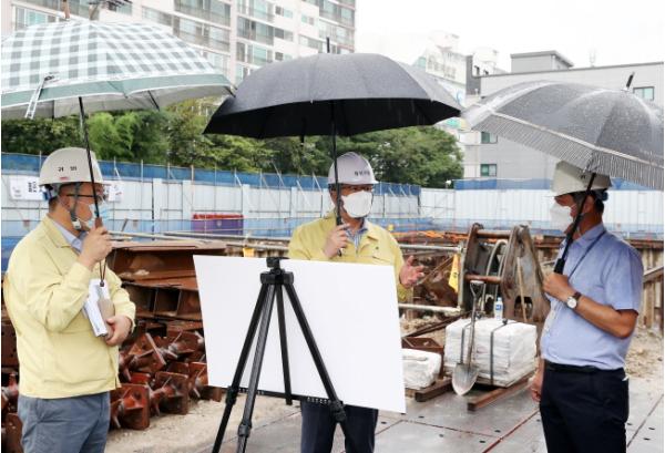 이날 공사현장을 찾은 정용래 유성구청장은 안전조치 사항을 점검하며 “철저한 대비로 태풍으로 인한 안전사고가 발생하지 않도록 만반의 준비를 다 해달라”고 당부했다.