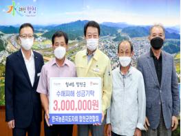 (사)한국농촌지도자 합천군연합회(회장 권태성)는 지난 1일 최근 집중호우 피해로 힘든 시기를 겪고 있는 수해민에 써달라며 합천군청을 방문해 성금 300만원을 기탁했다.