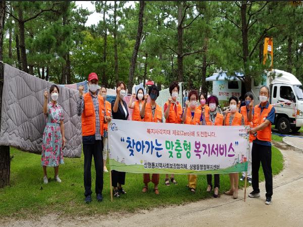 상평동 지역사회보장협의체 회원 12명은 거동이 불편한 장애인과 홀로 어르신 20가구를 직접 방문해 대형이불 45채를 수거해와 경남광역자활센터의 이동세탁 차량을 이용하여 세탁을 하고, 송림공원의 산들바람에 뽀송뽀송하게 말려 다시 집으로 배달해주는 맞춤형 봉사를 진행하였다.