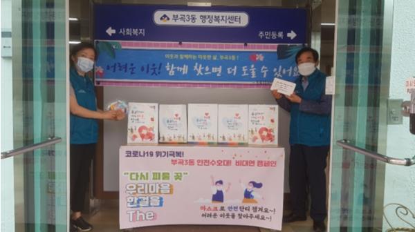 부산시 금정구(구청장 정미영) 부곡3동 지역사회보장협의체(민간위원장 김종암)(이하 지사협)는 지난 1일 주민 누구나 마스크목걸이를 가져갈 수 있도록 무인 배부대를 행정복지센터 입구에 설치하고 ‘부곡3동 안전수호대-마스크목걸이 나눔’ 비대면 캠페인을 실시했다.