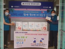 또한 부곡3동 지사협은 코로나19 위기극복 및 복지사각지대 발굴사업 추진을 위해, 관내 취약계층 386세대를 방문하여 코로나19 예방수칙 및 복지 안내문과 함께 마스크목걸이를 비대면으로 전달했다.