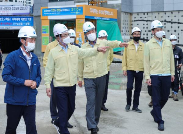 대전시 허태정 시장은 2일 오후 갑천친수구역 조성사업 현장을 찾아 이날 밤부터 영향을 미칠 것으로 예상되는 제9호 태풍 마이삭으로 인한 피해가 없도록 사업장과 시설을 직접 점검하고 대비에 만전을 당부했다.