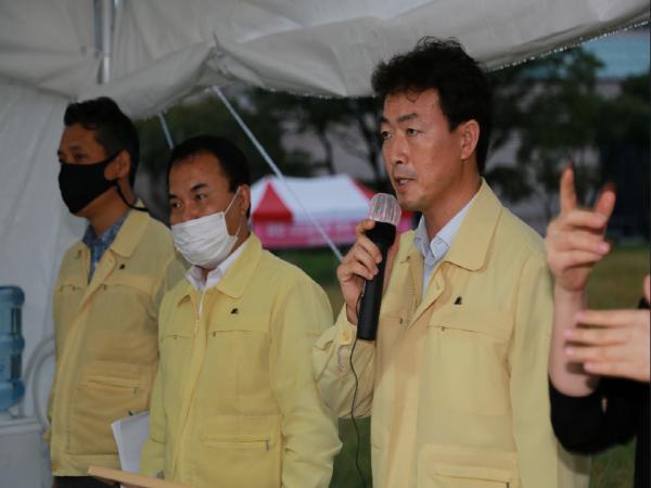 김종천 과천시장은 2일 정부과천청사 앞 잔디마당에 설치된 천막 집무실에서 ‘정부과천청사 일대 주택공급 계획’과 관련하여 지난 8월 4일 성명 발표에 이어 재차 성명을 발표하고, 해당 계획을 즉각적으로 전면 철회하라고 요구했다.
