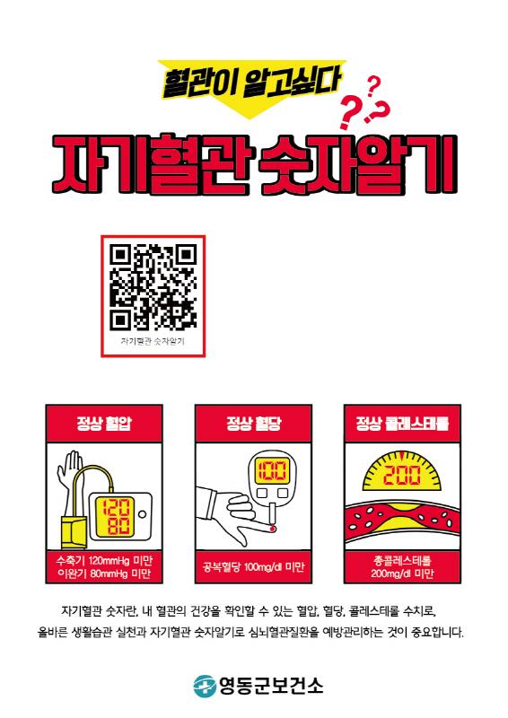 충북 영동군은 심뇌혈관질환 예방관리주간을 맞이하여 9월 한달동안「자기혈관 숫자 알기」SNS 캠페인을 추진한다고 밝혔다.