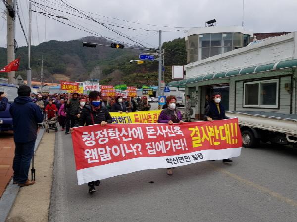 주민 A씨의 친척이며 축산업자인 B씨는 2018년 10월 학산면 서산리에 돈사를 신축하기 위해 군에 건축신고를 했으나, 군은 같은 해 11월 진입도로 미개설, 악취 발생 우려 등의 사유로 반려했다.