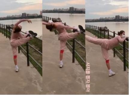핑클 옥주현이 한강에서 우아한 발레 동작을 선보여 화제다.
