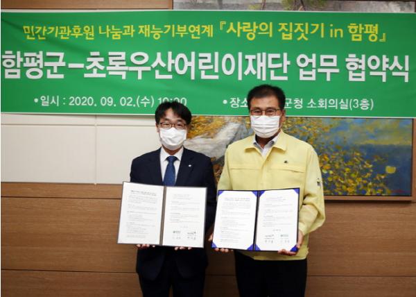 전남 함평군(군수 이상익)은 지난 2일 군청 군수실에서 초록우산 어린이재단(전남지역본부장 박수봉)과 ‘사랑의 집짓기 in 함평’ 업무협약을 체결했다고 3일 밝혔다.