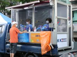 ‘차량 탑재형 이동식 선별진료소’는 트럭 적재함에 진료부스가 설치된 ‘바퀴 달린 선별진료소’로 차량이 통행할 수 있는 곳이면 어디서든 검사가 가능하다. 임시 선별진료소를 여러 차례 설치해 본 경험이 있는 구로구보건소 직원이 아이디어를 냈다.