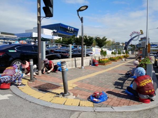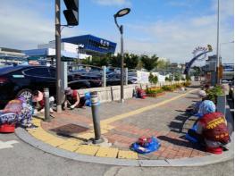 중앙동 희망일자리사업 근로자들이 다가오는 추석 명절을 맞아 고향을 찾는 귀성객과 시민들에게 깨끗하고 쾌적한 이미지를 심어주기 위해 구슬땀을 흘리고 있다.