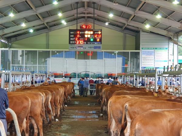 이날 경매에는 송아지 172두가 출하됐고, 경매종사자와 경매참가자(소 구입자) 등 필수요원 80여명만 참여했다.