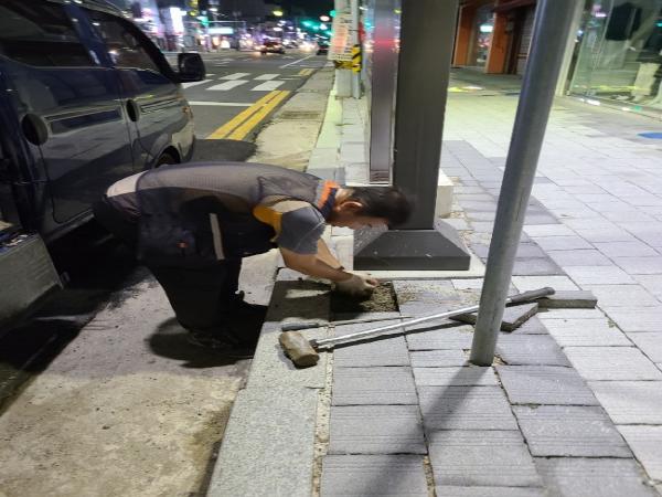 평화동 도시재생사업의 일환으로 중앙초등학교에서부터 국민은행까지 왕복 700m구간에 『김천로 보행환경여건개선 사업』으로 설치된 가로등, 열주등, 보도블록 등의 훼손, 파손 등을 점검하여 파손된 포인트 대리석 블록을 일부 긴급정비하고 순차적으로 하자보수하여 빠른 시일내에 정비를 완료할 계획이다.