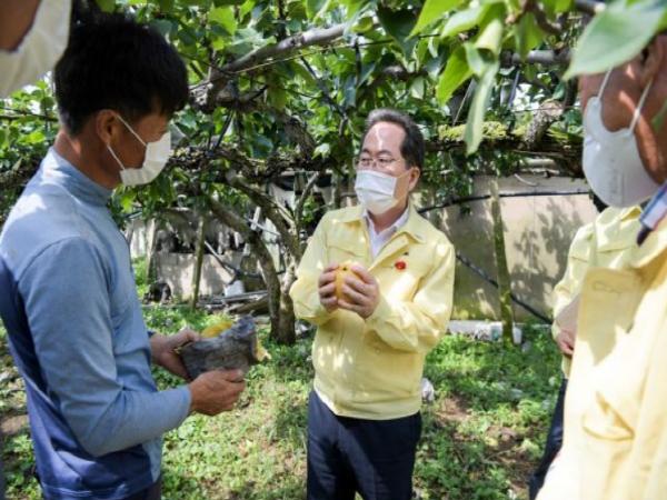허석 순천시장은 제9호 태풍 ‘마이삭’이 3일 새벽 남해안을 지나면서 낙과, 벼 도복 등 피해를 입은 낙안면, 도사동을 차례로 방문하여 주민들을 위로하고 피해복구 상황을 점검했다.