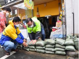 침수취약 건축물 22개소에는 차수판을 비치하고, 시장골목 배수구 고무판 덮개 제거, 1,800여개 모래주머니 현장배치 및 비치상태를 점검했다.