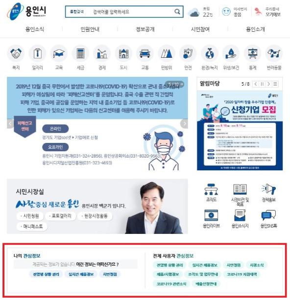 용인시, 홈페이지 사용자 편의 개선…사용자별 관심 정보‘키워드’로 -