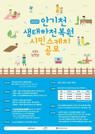안동시와 한국수자원공사 안동권지사, 경상북도안동교육지원청은 「물순환도시 안동」 조성사업에 시민의 의견을 수렴하기 위하여 ‘2020 안기천 생태하천 복원 시민스케치 공모’를 실시한다.