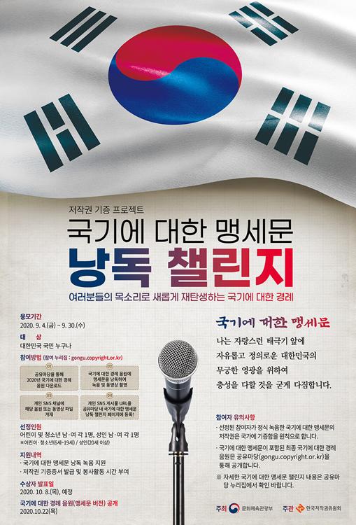 문체부와 위원회는 이번 음원 공개와 더불어 9월 4일(금)부터 30일(수)까지 ‘국기에 대한 맹세문 낭독 참여 잇기(챌린지)’를 진행하고 우수 낭독자로 청소년(어린이) 남녀 각 1명, 성인 남녀 각 1명 등 총 4명을 선정할 계획이다.
