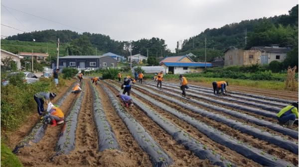 서천군 희망종천후원회(회장 김병찬)는 4일 후원회원, 희망일자리 근로자, 공무원 등 50여 명이 참여한 가운데 종천면 당정리 일원 휴경지 1000㎡에 900포기의 배추를 심었다.