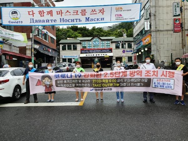 특히 연수구 특화·음식문화거리와 각 상가번영회에서도 방역조치 준수에 자발적으로 동참하며 민·관이 한마음이 되어 지역 내 감염 연결고리를 끊는데 적극 협조하고 있다.