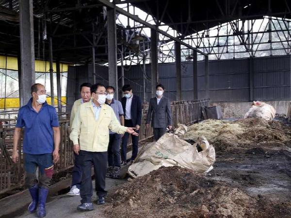 영광군수(김준성)는 지난 3일 제9호 태풍 ‘마이삭’으로 인해 화재 피해를 입은 축산농가 현장을 점검하고 신속한 피해 복구를 주문했다.