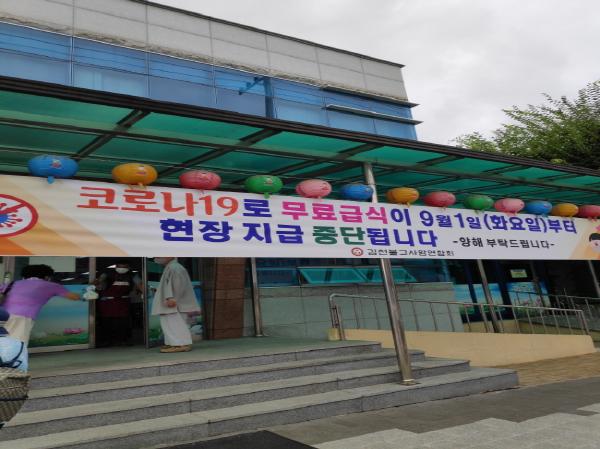 김천시는 올해 2월부터 코로나 19발생 이후 감염을 방지하기 위해 무료급식소를 중단하고 현장에서 대체식(도시락 및 부식)을 제공하여 왔으나, 코로나19 감염 재확산 방지 및 사회적거리두기 2단계 격상에 적극 대처하기 위해 현장 배부를 중단하였다. 그 대책방안으로 결식이 우려되는 저소득 취약계층 어르신 가정을 엄선하여 직접 가정방문하여 전달하기로 하였다.