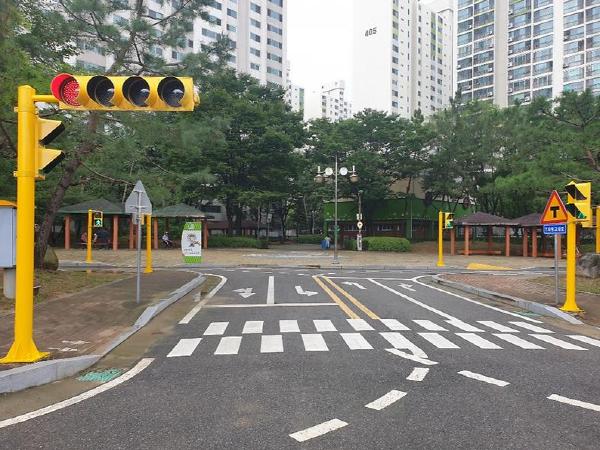 실외 체험장에 설치된 보행신호등 12대, 차량신호등 4대와 철도 건널목 신호등을 전력소모가 적은 LED로 바꾸고 신호등 커버를 노란색으로 교체하여 어린이 보호구역의 상징성을 제고하였다.