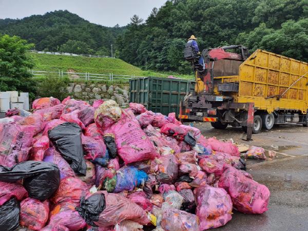 8월 26일부터 회원들은 제천 자원관리센터 지원에 나서 무더위와 악취 속에서 집게차를 동원하여 생활폐기물 적환장 상차 작업과 함께 침수지역에서 수거한 혼합 쓰레기에 대한 선별작업을 펼치고 있으며, 수해복구과정에서 발생하는 다량의 수해폐기물의 신속한 처리에 많은 도움을 주고 있다.