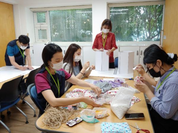 ‘전통놀이 키트박스’에는 직원들이 손수 만든 사방치기, 제기차기, 투호던지기, 보름달 소원 빌기 등 전통놀이 교구와 함께 놀이방법, 손편지 등이 담겨 있으며, 동두천시장애인종합복지관을 이용하는 장애 아동·청소년 20여 가정에 추석 연휴 전에 직접 전달할 예정이다.