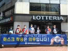 북부동행정복지센터와 자생단체 회원들은 마스크 4,500장을 방역수칙 홍보지와 함께 주민들에게 나눠주며, 마스크 착용의 중요성과 올바른 마스크 착용법 등을 설명했다.