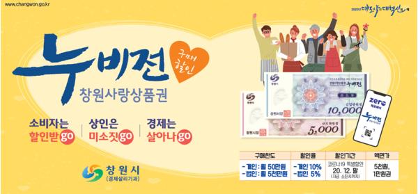 창원시는 올 한해 누비전 1,400억 원을 발행했으며, 상품권 도입(모바일 '19. 8월, 지류 '19. 12월) 1년 만에 연간 발행규모가 전국 세 번째인 기초자치단체가 됐다.
