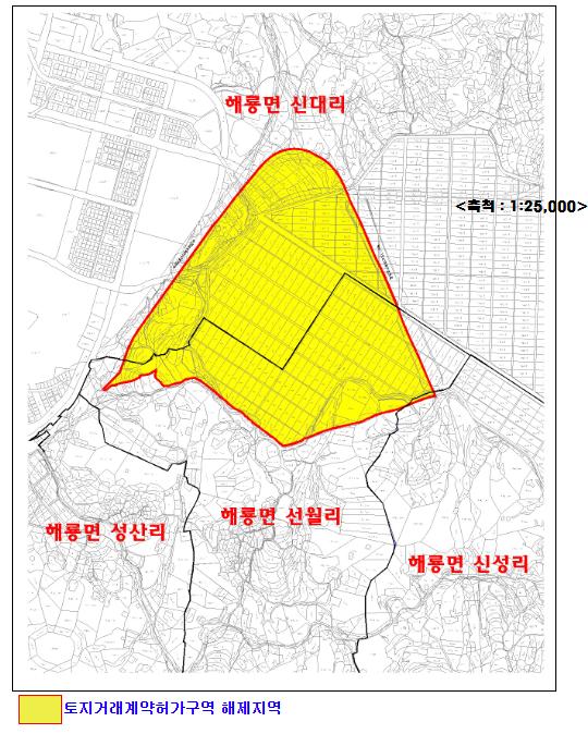 전라남도는 순천시 해룡면 선월하이파크 단지에 대한 토지거래 허가구역 지정기간이 4일 만료돼 해제한다고 밝혔다.