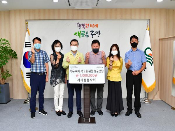 중랑구(구청장 류경기)가 4일 오전 면목7동 봉사단체인 사가정봉사회로부터 지역 내 폭우 피해가구를 돕기 위한 성금 백만원을 전달 받았다고 밝혔다.