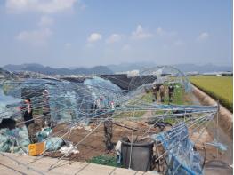 태풍 '마이삭'은 2일 밤과 3일 새벽 사이 김해지역에 강우와 강풍을 몰고와 벼 쓰러짐과 침수, 낙과, 비닐하우스 파손 등 크고 작은 피해를 입혔다.