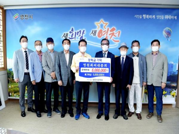 영천시(시장 최기문)는 지난 4일 영천최씨대종회에서 500만원의 장학금을 (재)영천시장학회(이사장 최기문)에 기탁했다고 밝혔다.