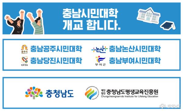 충남 시민대학을 총괄 지원하는 충남평생교육진흥원 조이현원장은 “충남 시민대학은 도민 누구나, 언제, 어디서라도 자유롭게 평생학습을 받을 수 있는 기회를 제공”하고 “앞으로 도민과 지역사회가 함께 성장발전 하는 종합적인 평생교육 기관으로 만들어가겠다”고 포부를 밝혔다.