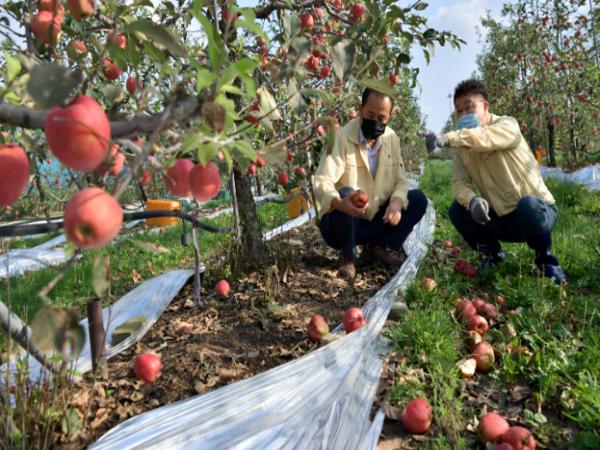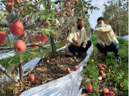 장영수 군수를 비롯한 농업기술센터 김성수 소장 등이 사과를 비롯한 과수 낙과 및 비닐하우스 등 피해현장을 점검했다.